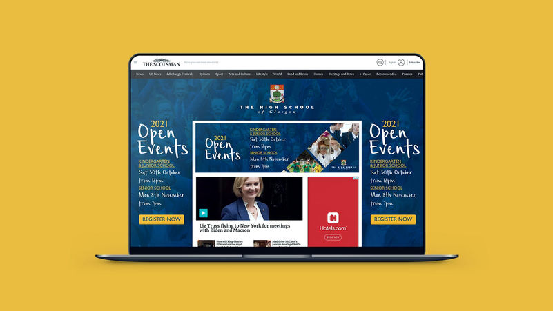 We have been working with The High School of Glasgow since 2019 providing visual identity and collateral design for the HSOG Community and various multi-channel campaigns to promote enrolment which can be seen across a range of media including socials, newspaper and magazine, digital and outdoor advertising.